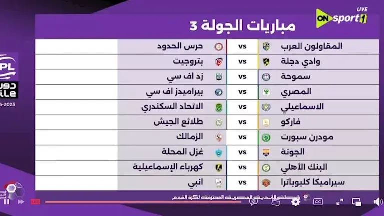 أخر الأخبار رياضة الجوله 3 في الدوري المصري. الجوله 3 في الدوري المصري Tweet Continue Reading Previous فيلم درويش يتصدر شباك تذاكر السينما في مصر.Next مباريات الأهلي القادمة 2025/2026. اعرف اكثر أبراج أخر الأخبار كل الناس نيوز : 4 أبراج تعرف تستغل أي فرصة للربح . أخر الأخبار رياضة سلوت يحسم موقفه من مشاركة صلاح أمام جالاتا سراي. أخر الأخبار رياضة تعرف على قائمة النادى الأهلي لمباراة طلائع الجيش اليوم بالدورى المصرى