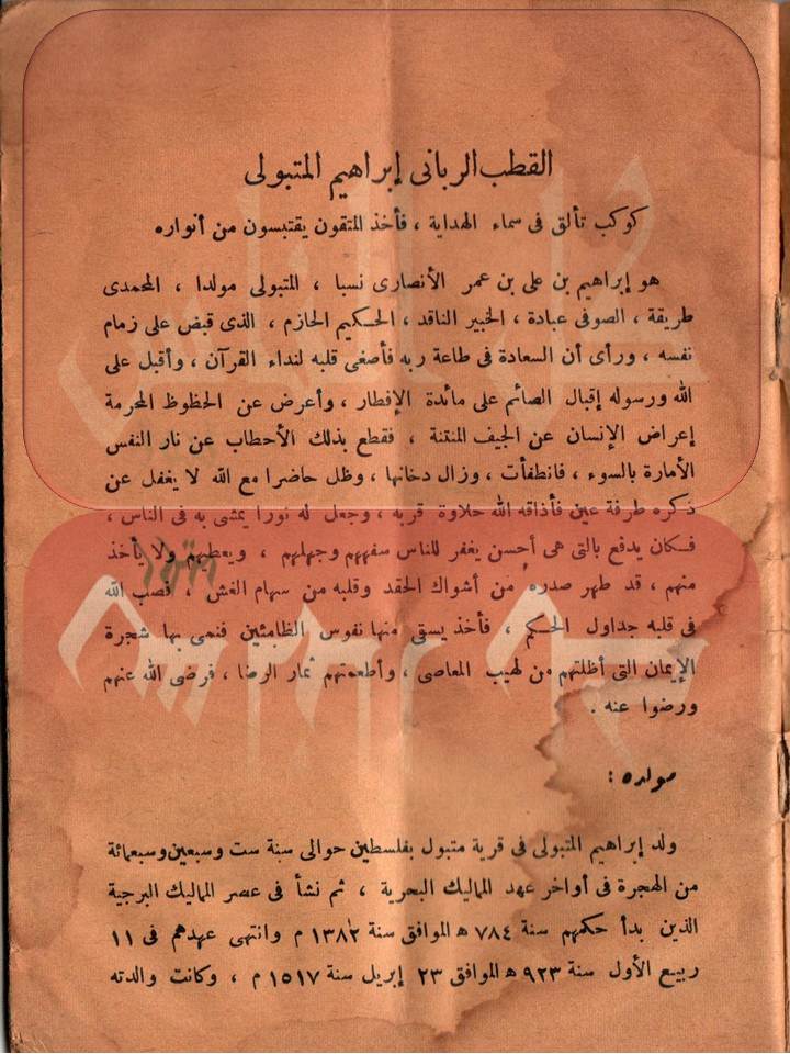 كتاب سيرة ” القطب الرباني ابراهيم على المدبولى ” يشرح تاريخه – تصوفه – أخلاقه ونبذه عن تاريخ “بركة الحاج ” .