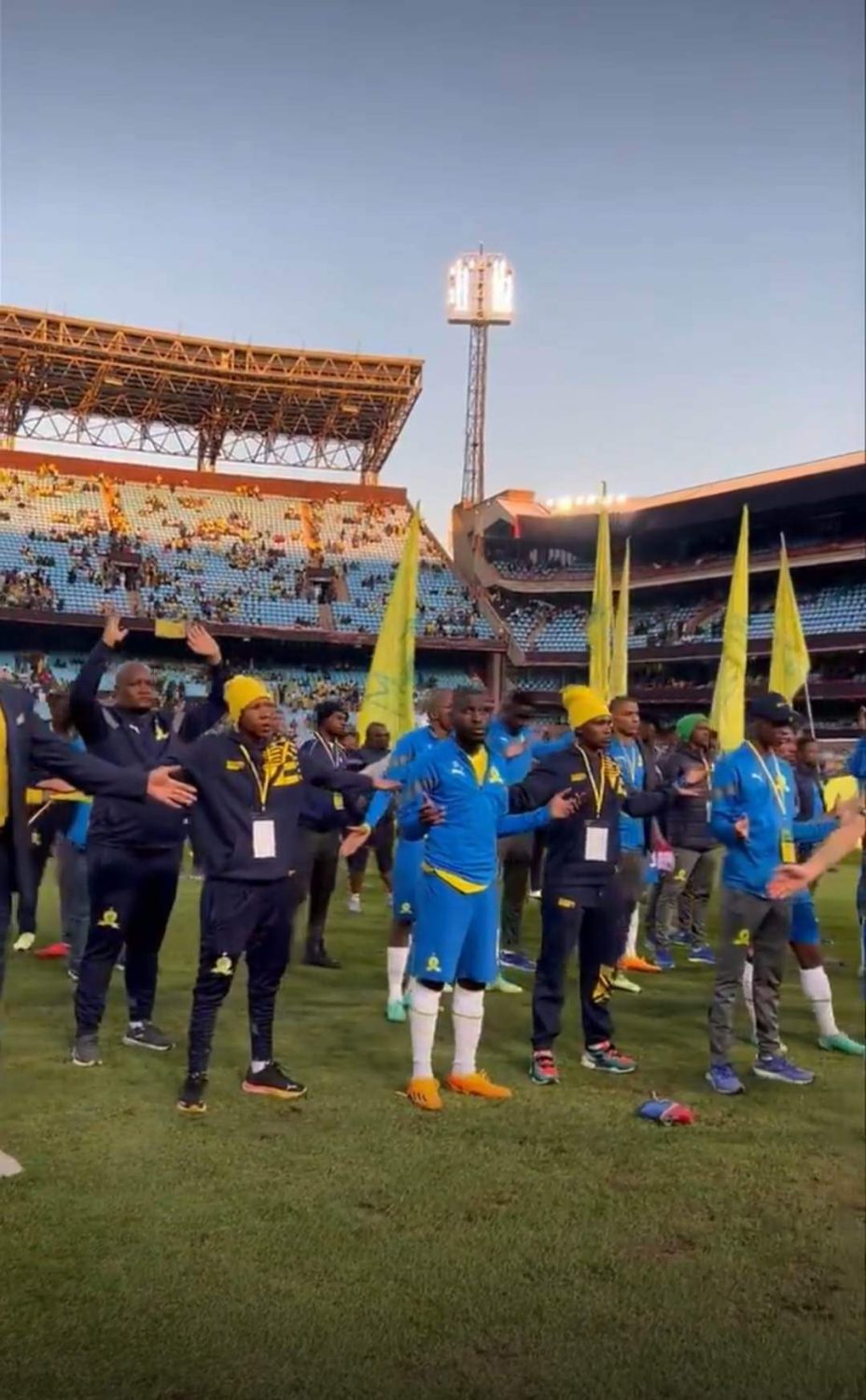 لاعبي صن داونز يعتذرون للجماهير علي طريقتهم الخاصة.