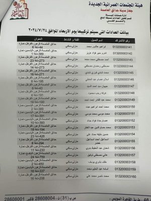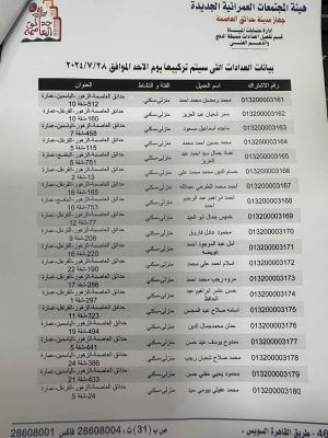اعتباراً من يوم الاثنين الموافق. ٢٠٢٤/٧/٢٢ ووفقا للكشوف المعلنه هذا ضمن خطة الجهاز لتوفير كافة الإمكانيات لزيادة نسب الإشغال بالمدينة